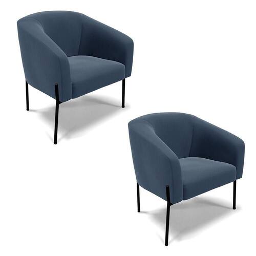 Cadeira Sala De Jantar Pé De Ferro Preto Kit 2 Stella Suede D03 - D`rossi Cor Azul Marinho