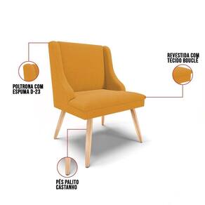 A Cadeira de Jantar Liz é a escolha perfeita para quem quer transformar a sua sala de jantar com muito estilo, conforto e durabilidade. Com um design moderno e sofisticado, essa cadeira é perfeita para compor ambientes de jantar ou cozinhas que pedem um toque de elegância. Seus pés palito natural e o revestimento em tecido Bouclê Mostarda se harmonizam facilmente com diferentes estilos de decoração, deixando sua mesa de jantar ainda mais convidativa. Feita com madeira de reflorestamento eucalipto e pinus, a Cadeira Liz é resistente e sustentável, suportando até 120 kg. Sua estrutura robusta, aliada ao acabamento impecável e à espuma de qualidade D-23, garante um assento confortável para aproveitar cada refeição com prazer. A Cadeira Liz é prática e fácil de transportar, com um peso leve e tamanho compacto, ideal para cozinhas e salas de jantar de todos os tamanhos. Além desse modelo, também temos a opção com base/pés e uma grande variedade de tecido/cores para atender ao seu estilo e conforto. E para deixar seu ambiente ainda mais harmonioso, oferecemos também kits especiais, incluindo: (2, 4 e 6 lugares) no mesmo design. Caso queira ajuda para escolher a melhor opção para o seu espaço, estamos à disposição! Aproveite e garanta já a sua. OBSERVAÇÃO IMPORTANTE: A entrega é realizada no endereço informado, não realizamos o transporte para andares superiores, como subir escadas, elevadores ou guinchos. Não realizamos montagens, desmontagens ou instalações. Todos esses serviços são de responsabilidade do comprador. Dimensões do Produto: Altura Total: 85 cm Largura Total: 55 cm Profundidade Total: 55 cm Peso: 9 kg Outras medidas: Altura do Encosto: 40 cm Largura do Assento: 45 cm Profundidade do Assento: 50 cm Altura do chão ao Assento: 45 cm Espessura do assento: 10 cm Tamanho dos pés: 35 cm Especificações do Produto: Estrutura: Madeira Eucalipto Espuma: D-23 Tecido: Bouclê Peso Suportado: Até 120 Kg Tipo de Pés: Pés Palito de Madeira Complexidade da Montagem: Baixo Montagem: O produto vai montado, apenas rosquear os pés Garantia: 90 dias contra defeito de fabricação Instruções de Limpeza: Utilizar um pano limpo e levemente úmido Você irá Receber: 04 Cadeiras Sala de Jantar - Entregue em: 02 Volumes