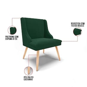 A Cadeira de Jantar Liz é a escolha perfeita para quem quer transformar a sua sala de jantar com muito estilo, conforto e durabilidade. Com um design moderno e sofisticado, essa cadeira é perfeita para compor ambientes de jantar ou cozinhas que pedem um toque de elegância. Seus pés palito natural e o revestimento em tecido Bouclê Verde se harmonizam facilmente com diferentes estilos de decoração, deixando sua mesa de jantar ainda mais convidativa. Feita com madeira de reflorestamento eucalipto e pinus, a Cadeira Liz é resistente e sustentável, suportando até 120 kg. Sua estrutura robusta, aliada ao acabamento impecável e à espuma de qualidade D-23, garante um assento confortável para aproveitar cada refeição com prazer. A Cadeira Liz é prática e fácil de transportar, com um peso leve e tamanho compacto, ideal para cozinhas e salas de jantar de todos os tamanhos. Além desse modelo, também temos a opção com base/pés e uma grande variedade de tecido/cores para atender ao seu estilo e conforto. E para deixar seu ambiente ainda mais harmonioso, oferecemos também kits especiais, incluindo: (2, 4 e 6 lugares) no mesmo design. Caso queira ajuda para escolher a melhor opção para o seu espaço, estamos à disposição! Aproveite e garanta já a sua. OBSERVAÇÃO IMPORTANTE: A entrega é realizada no endereço informado, não realizamos o transporte para andares superiores, como subir escadas, elevadores ou guinchos. Não realizamos montagens, desmontagens ou instalações. Todos esses serviços são de responsabilidade do comprador. Dimensões do Produto: Altura Total: 85 cm Largura Total: 55 cm Profundidade Total: 55 cm Peso: 9 kg Outras medidas: Altura do Encosto: 40 cm Largura do Assento: 45 cm Profundidade do Assento: 50 cm Altura do chão ao Assento: 45 cm Espessura do assento: 10 cm Tamanho dos pés: 35 cm Especificações do Produto: Estrutura: Madeira Eucalipto Espuma: D-23 Tecido: Bouclê Peso Suportado: Até 120 Kg Tipo de Pés: Pés Palito de Madeira Complexidade da Montagem: Baixo Montagem: O produto vai montado, apenas rosquear os pés Garantia: 90 dias contra defeito de fabricação Instruções de Limpeza: Utilizar um pano limpo e levemente úmido Você irá Receber: 01 Cadeira Sala de Jantar - Entregue em: 01 Volume