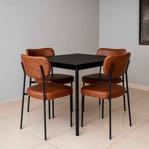 Sua estrutura em aço carbono com pintura epóxi preta garante resistência e longa durabilidade, enquanto o assento e encosto estofados em couríssimo premium oferecem elegância, fácil manutenção e aconchego em qualquer ocasião.
