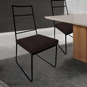 Cadeira Sala De Jantar Escritório Office Stark Industrial Ferro Preto Corino Marrom - Ahazzo Móveis Cor Marrom