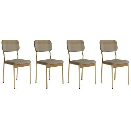 Cadeira Sala De Jantar Valle 1755 Aço Kit 4 Uni Dourado/linho Bamboo/courano Bamboo/noce - Carraro
