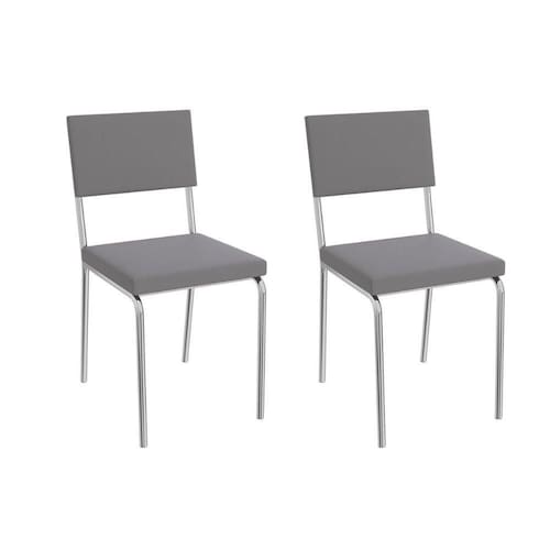Cadeira Sala de Jantar Zaria 2C128 Aço Kit 2 Uni Cromado/Cinza A050 Suede Veludo - Kappesberg
