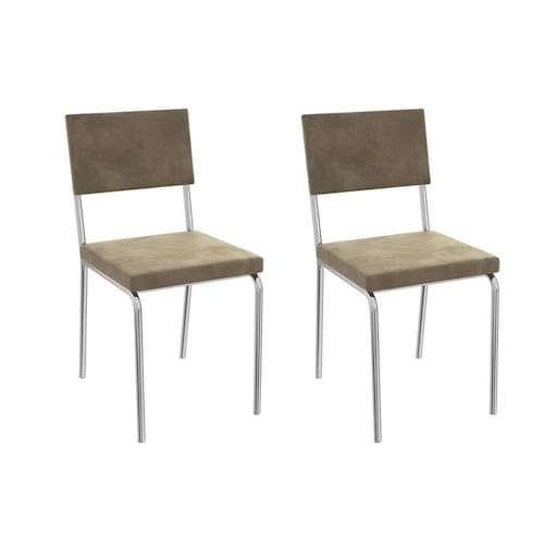 Cadeira Sala de Jantar Zaria 2C128 Aço Kit 2 Uni Cromado/Suede Bege - Kappesberg