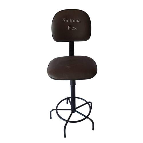Cadeira secretaria caixa alta com base de ferro sem rodízio corano marrom Cadeira caixa - com regulagem de altura a gás - pés fixos- com sapata - prolongador de tamanho - madeira