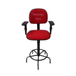 Cadeira secretaria caixa alta com braço de regulagem de altura - a gás - base de ferro fixa - tecido vermelho Cadeira caixa - aro para apoio dos pés - prolongador de altura - madeira reflorestada - espuma injetada - bordas em pvc flexivel - pés fixo - braço com regulagem Altura do chão ao assento: Mínima 62 cm Máximo 75 cm Marca: Sintonia Flex