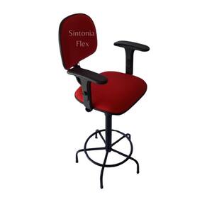 Cadeira secretaria caixa alta com braço de regulagem de altura - a gás - base de ferro fixa - tecido vermelho Cadeira caixa - aro para apoio dos pés - prolongador de altura - madeira reflorestada - espuma injetada - bordas em pvc flexivel - pés fixo - braço com regulagem Altura do chão ao assento: Mínima 62 cm Máximo 75 cm Marca: Sintonia Flex