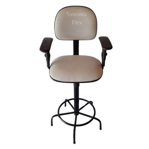 Cadeira secretaria caixa alta com braço de regulagem de altura - a gás - base de ferro fixa recpçao -corano branco Cadeira caixa - aro para apoio dos pés - prolongador de altura - madeira reflorestada - espuma injetada - bordas em pvc flexivel - pés fixo - braço com regulagem - revestida em corano cipatex - bordas em pvc flexivel -pintura eletrostática epoxi - estrutura em aço com acabamento em pvc Altura do chão ao assento: Mínima 62 cm Máximo 75 cm peso maximo 110 kl Marca: Não Informado