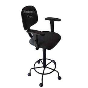 Cadeira secretaria caixa alta - braço com regulagem de altura - estrela de ferro com rodízio - aro tecido cinzapreto Cadeira caixa - aro para apoio dos pés - prolongador de altura - madeira reflorestada - espuma injetada - revestida em corano cipatex - bordas em pvc flexivel - pés de ferro com rodízio - pintura eletrostática epoxi - estrutura em aço com acabamento em pvc Altura do chão ao assento: Mínima 63 cm Máximo 75 cm Peso maximo recomendado: 110 kl Marca: Não Informado