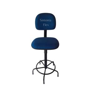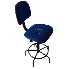 Cadeira secretaria caixa alta com base de ferro sem rodízio tecido azul