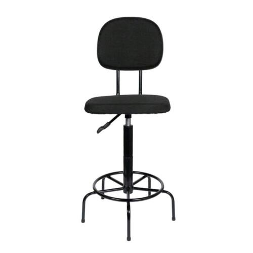 Cadeira secretaria caixa alta com L duplo com base fixa para recepção mercado balcão tecido preto