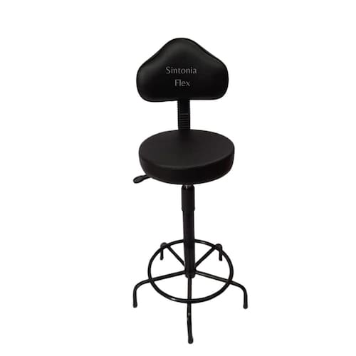 Cadeira secretaria caixa alta Verona com base de ferro fixa para recepção mercado balcão corano preto Cadeira caixa - com regulagem de altura a gás - estrela com rodízios - prolongador de tamanho - madeira