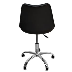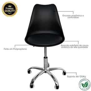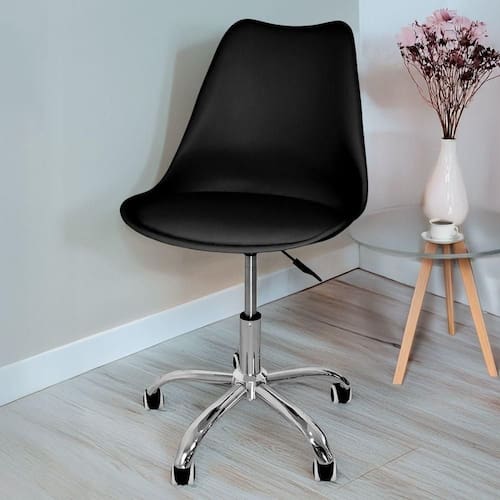 Cadeira Secretária Com Base Giratória Estofada ícaro Preto Cadeira Secretária Com Base Giratória Estofada Ícaro Preto - Seu escritório merece este ícone do design. Eleve o estilo e o conforto do seu escritório com a Cadeira Ícaro. Com design icônico, assento estofado e base giratória em metal cromado, ela une beleza e funcionalidade. Ajuste a altura ideal para você e deslize suavemente com as rodinhas de silicone que não riscam o piso. Versátil e disponível em sete cores vibrantes, é a escolha perfeita para quem busca qualidade e personalidade. Um produto com a garantia e o suporte que só a Dkadi Decor oferece para renovar seu ambiente de trabalho.