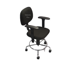 Cadeira secretaria giratoria pistão a gás com base cromada tecido preto Cadeira de escritório secretária - regulagem de altura a gás - espuma injetada - revestida em tecido j.Serrano anti-chama - bordas em pvc flexivel - pintura eletrostatica - base cromada - apoio para oa pés Marca: Sintonia Flex