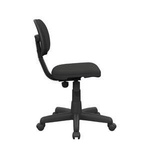 A Cadeira Giratoria e constituida de: Assento e Encosto, Plataforma, L Base com rodizio. O conjunto de sustentacao do assento e encosto e constituido de uma estrutura em formato de Lque se fixa ao mecanismo por meio de um knob 5/16. O assento se fixa ao mecanismo por 4 parafusos x3/4 sextavados. Ja o encosto se fixa a outra extremidade do L atraves de 2 parafusos Philips cabeca panela alojados em peca para acoplamento produzida em polipropileno injetado. O mecanismo por sua vez acopla ao pistao que e encaixado na base de cinco pernas com cinco rodizios. O assento possui estrutura em madeira medindo 420 mm de largura, 380 mm de profundidade e 10 mm de espessura com cantos arredondados e, quatro porcas garra de rosca sao fixadas 'a mesma. O estofado possui espuma injetada com espessura de 30 milimetros e densidade de 45 Kg, moldada anatomicamente. A altura minima e maxima do assento ate o chao fica entre 470mm e 565mm. O assento e revestido em sua base por uma capa plastica injetada em polipropileno com acabamento texturizado. O encosto consiste em uma estrutura de polipropileno copolimero injetado e moldado anatomicamente, com dimensoes de 360 mm de largura por 270 mm de altura com espessura de 11 mm e cantos arredondados, espuma injetada com espessura de 30 milimetros de altura e densidade de 45Kg, moldado anatomicamente e uma capa de acabamento em polipropileno injetado com acabamento texturizado. Ele e unido a estrutura por um tubo oblongo de 16x30 mm com espessura de parede de 1,5 mm revestido com uma sanfona. Esse e fixado por uma acopla na parte posterior do encosto e se fixa a plataforma por meio de um knob. Permitindo assim a regulagem da distancia longitudinal do encosto. Tanto assento quanto encosto sao revestidos em tecido ou couroeco sem costuras. Recebe banhos de fosfatizacao e pintura epoxi em po alem de uma carenagem injetada em polipropileno com acabamento texturizado.
