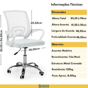 > Material do Assento: Madeira Compensada Revestida em Tela Mesh.