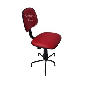 Cadeira secretaria pra costureira com pé da base menor corano vermelho Cadeira secretária - regulagem de altura a gás - pés em aço fixo - madeira reflorestada - espuma injetada - bordas em pvc flexivel - pintura eletrostática epoxi Marca: Sintonia Flex