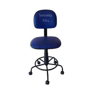 Cadeira secretaria com regulagem de altura a gás - base de ferro - rodízio e apoio de pé corano azul Cadeira secretária de escritório - com regulagem de altura a gás - base de ferro com rodízios - madeira reflorestada anatômica - espuma injetada - bordas de pvc flexível - braço com regulagem - aro para apoio dos pés - revestida em corano cipatex - bordas em pvc flexivel - pintura eletrostática epoxi Medidas do chão ao assento: Mínimo: 53 cm Máximo: 63 cm Peso máximo recomendado: 110 kg Marca: Sintonia Flex