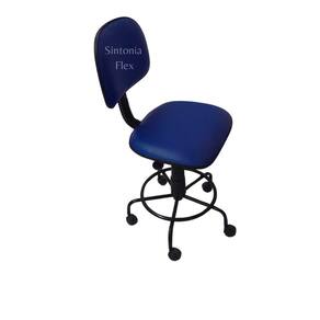 Cadeira secretaria com regulagem de altura a gás - base de ferro - rodízio e apoio de pé corano azul Cadeira secretária de escritório - com regulagem de altura a gás - base de ferro com rodízios - madeira reflorestada anatômica - espuma injetada - bordas de pvc flexível - braço com regulagem - aro para apoio dos pés - revestida em corano cipatex - bordas em pvc flexivel - pintura eletrostática epoxi Medidas do chão ao assento: Mínimo: 53 cm Máximo: 63 cm Peso máximo recomendado: 110 kg Marca: Sintonia Flex