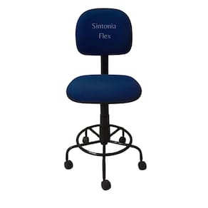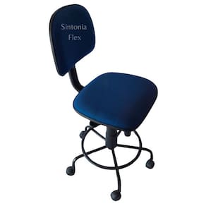 Cadeira secretaria com regulagem de altura - base de ferro - rodízio e apoio de pé tecido azul