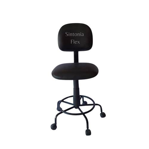 Cadeira secretaria com regulagem de altura - base de ferro - rodízio e apoio de pé corano preto Cadeira secretária de escritório - com regulagem de altura a gás - base de ferro com rodízios - madeira