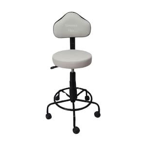 Cadeira secretaria mocho podóloga estética - regulagem de altura a gás - espuma injetada , revestida em tecido suede - bordas em pvc flexivel - estrela de ferro com rodízios - apoio para os pés