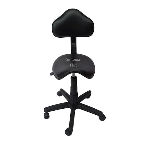Cadeira sela estetica - regulagem de altura a gás - para dentista, manicure, tatuador corano preto Cadeira sela - regulagem de altura a gás - espuma injetada , revestida em corano cipatex - bordas em pvc flexivel - pintura eletrostática - base preta com rodizios Altura do chão ao assento máximo 53cm mínimo 43cm Marca: Não Informado