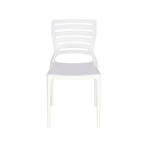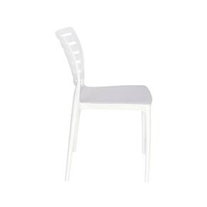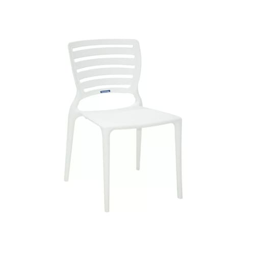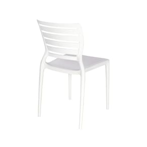A Cadeira Sofia Branca Tramontina é feita de polipropileno e fibra de vidro.