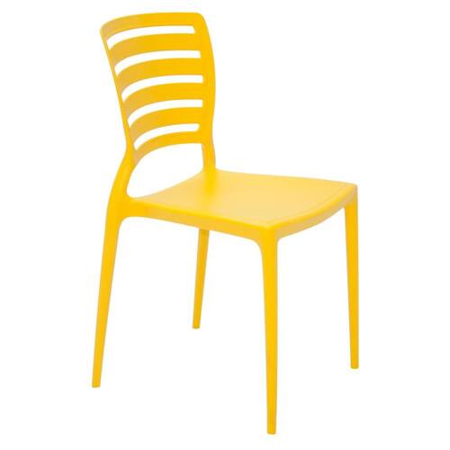Leve cor e criatividade para qualquer ambiente com a Cadeira Tramontina Sofia Amarela sem Braços Encosto Vazado Horizontal em Polipropileno e Fibra de Vidro da linha Summa. A Sofia irá lhe oferecer uma proposta única, ela é robusta, bonita e moderna. Uma peça que promete transformar a decoração, seja da sua casa ou do escritório. Seu design diferenciado e variedade de cores permitem uma proposta superinteressante, onde você poderá utilizar a criatividade e escolher cadeiras com cores diferentes. São cinco modelos dela: Sofia encosto fechado, Sofia encosto vazado vertical, Sofia encosto vazado horizontal, Sofia com braço e encosto vazado horizontal, e por fim, Sofia com braço e encosto fechado. Para garantir durabilidade e evitar acidentes, não suba no assento, evite jogar-se sobre a cadeira ou apoiar-se somente nas pernas traseiras. Além de evitar longa exposição ao sol. Ela é resistente a uma carga estática de até 182 kg.