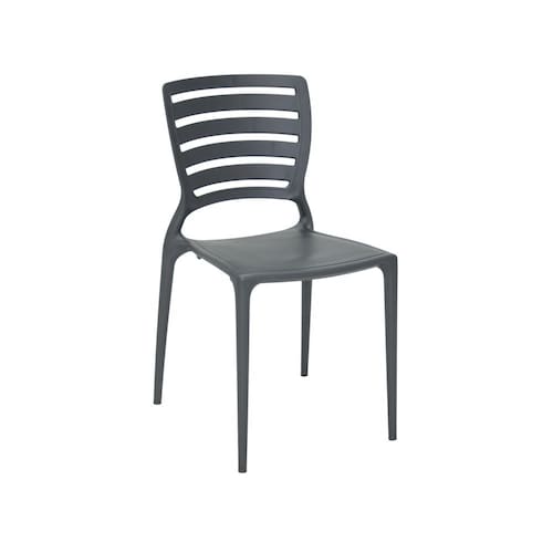 A Cadeira Sofia Grafite Tramontina é feita de polipropileno e fibra de vidro.