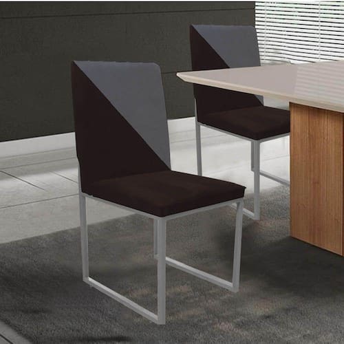 Cadeira Office Stan Duo Sala De Jantar Industrial Ferro Cinza Suede Marrom E Cinza - Ahazzo Móveis Cor Cinza