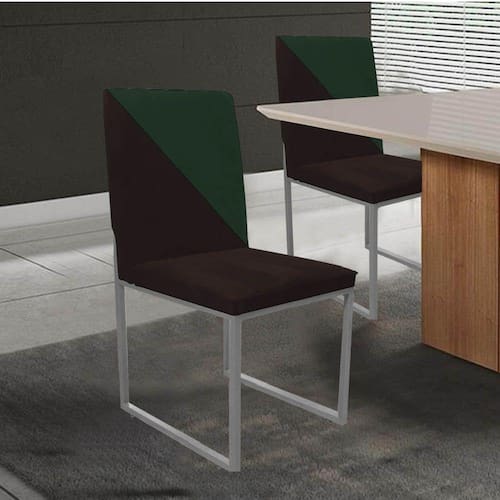 Cadeira Office Stan Duo Sala De Jantar Industrial Ferro Cinza Suede Marrom E Verde Musgo - Ahazzo Móveis Cor Verde