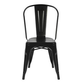 Cadeira Tolix Iron Design Preta Cadeira Tolix Iron Design Cadeira Fixa Design Tolix Metal Pelegrin PEL-1518 Preta Conhecida popularmente como ?Cadeira Francesinha?, tem grande influência no mercado europeu devido ao seu elegante design retrô. O modelo clássico idealizado pelo francês Xavier Pauchard nos anos 20 foi resultado de seu experimento pioneiro da fabricação de móveis com metal galvanizado.A cadeira com formas simples, porém funcionais fez tanto sucesso que se tornou muito popular em fábricas, escritórios, restaurantes, bem como nos cafés, bares e parques públicos da época. Hoje conhecida como ?Cadeira Tolix?, é um ícone da estética industrial, podendo ser utilizada em qualquer ambiente trazendo elegância e personalidade.Com estrutura em aço de carbono e acabamento em pintura eletrostática, pode ser utilizada em ambientes externos. Projetada com alguns furos em seu assento com a finalidade de não acumular água, facilitando sua limpeza e manutenção.A ?Cadeira Tolix? é clássica, com design vintage e pode ser combinada com outros modelos de cadeiras. Disponível em variedade de cores, permitindo um ambiente mais descontraído. Instruções De LimpezaAplique um sabão em uma esponja úmida e limpe toda a superfície da banqueta, e logo em seguida, limpe o sabão com um pano branco úmido. Assento: Aço com Pintura EpóxiBase: Aço com Pintura Epóxi Profundidade: 47 cmLargura: 45 cmAltura Total: 86 cmAltura do Chão Até o Assento: 45 cmProfundidade Interna do Assento: 36 cmLargura Interna do Assento: 45 cmPeso Máx. Recomendado: 120 kgsPeso unitário: 6 kgs