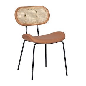 Nossa Cadeira Toscana Base Preta - PU Caramelo é uma peça que combina um design moderno com um toque de charme retrô. O assento possui um formato ergonômico e é revestido em PU em um tom caramelo acolhedor, sugerindo conforto e um toque de sofisticação natural. O encosto oval apresenta uma estrutura de madeira clara que emoldura um detalhe em telinha rattan trançado, adicionando uma textura natural e um apelo visual único à peça.