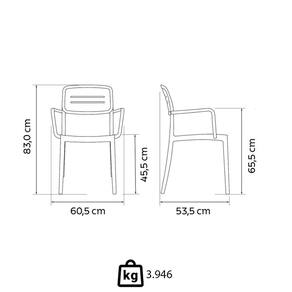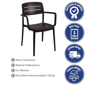- Tenha conforto e resistência com a cadeira Tramontina Amélia em polipropileno marrom com braços.