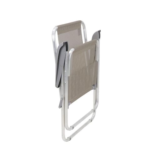 Peso Máximo Recomendável: 110 kg Fabricação: Apoios em polipropileno injetado, tubo em alumínio natural e tela em poliéster com proteção ANTI-UV. Modelo: Dobrável com antiderrapante