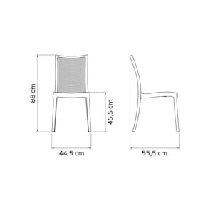 Peso Máximo Recomendável: 182 kg Produzido em Polipropileno e Fibra de Vidro Empilhável até: 5 peças Textura Rattan