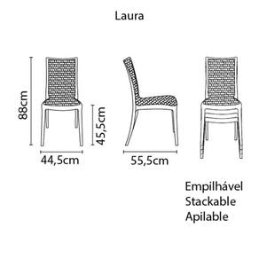 A cadeira Laura não anda desacompanhada, quando combinada com a mesa Laura formam uma dupla perfeita. A textura da cadeira lembrando ratan, sinaliza um traço de personalidade marcante e charme para o seu ambiente.