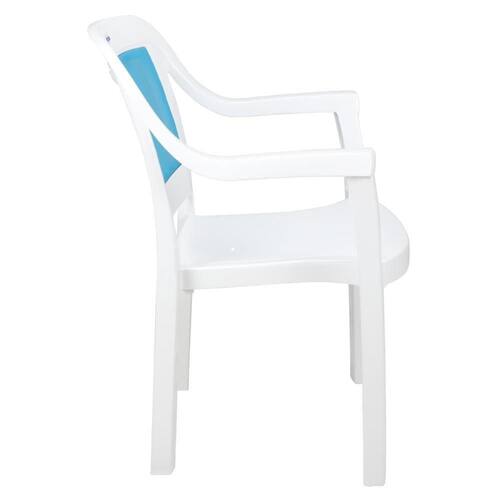 Cadeira Tramontina Miami Em Polipropileno Branco Tela Azul Cadeira Tramontina Miami em Polipropileno Branco com Tela Azul A Cadeira Tramontina Miami em Polipropileno Branco com Tela Azul é a verdadeira representação da união entre estilo e funcionalidade, trazendo consigo o espírito vibrante das praias ensolaradas de Miami e das suas paisagens costeiras. Fabricada com resina de polipropileno injetado, ela conta com design monobloco que lhe concede um charme único que se destaca em qualquer ambiente. Com capacidade de suportar até 182 quilos, ela é ideal para diversas ocasiões, seja para reuniões em família, eventos comerciais ou momentos de descontração. É empilhável até 09 peças, possui antiderrapante e furo para escoamento da água, que permite que você a utilize em ambientes externos, sem se preocupar com a limpeza. Eleve o estilo e a funcionalidade dos ambientes com esta cadeira de beleza singular, inspirada na energia duradoura das praias e do estilo de vida de Miami!