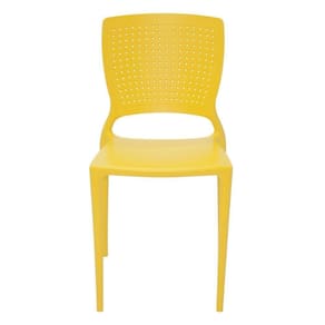 A linha de cadeiras Safira é uma irmã mais nova já conceituada linha Sofia. Nessa versão as cadeiras estão completas: robustas, bonitas e mais modernas. Para agradar a todos os públicos a linha Safira tem duas versões: Safira com braços e Safira sem braços. A Cadeira Tramontina Safira Amarela sem Braços em Polipropileno e Fibra de Vidro da linha Summa é leve, resistente e com design diferenciado. Para evitar acidentes, não se apoie nas duas pernas traseiras ou suba no acento. Submetida a rigorosos testes de qualidade, a cadeira resiste a uma carga estática de até 182 kg. Possui um ano de garantia.