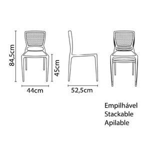 Cadeira Tramontina Safira Grafite Safira a irmã mais nova da cadeiraSofia, moderna com desing diferenciado, essa cadeira agrada a todos ospúblicos, resistente, leve e empilhável essa cadeira monobloco foi produzidacom tecnologia de última geração com rigorosos testes de qualidade. Recomendações de Uso: - Antes do uso: Antes de utilizar o , remova as eventuais limpeza deste produto deve ser feita com água e sabão neutro, auxiliada por esponja macia ou tecido macio apropriado. O uso de produto químicos esponjas abrasivas e outros equipamentos como lava-jatos não são recomendados.- Modo de uso: Evite exceder o limite de peso estipulado para que não ocorra acidentes ou não comprometer a integridade da peça. O ou movimentação desse produto deve ser feito com cuidado. Para que o produto mantenha sua beleza e longevidade é recomendado que ele seja guardado quando estiver fora de uso. Não subir no assento, evite jogar-se sobre a cadeira ou apoiar-se somente nas duas pernas traseiras: evite acidentes.- Foto meramente ilustrativa. Informações Adicionais: