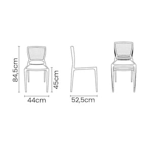 Mais Informações - Peso Máximo Recomendável: 182 kgFabricação: Polipropileno e Fibra de Vidro InjetadoEmpilhável até: 9 peças
