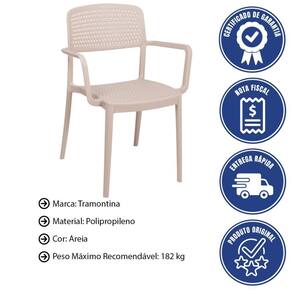 - A Cadeira Tramontina Serena na cor areia com braços traz sofisticação e conforto para qualquer ambiente.