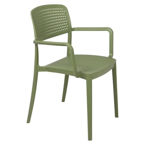 Traga modernidade e funcionalidade para o seu ambiente com a cadeira Tramontina Serena em polipropileno verde oliva com braços. Com um design elegante, é ideal para espaços internos ou externos, como salas de jantar e jardins. Produzida com aditivos antifúngicos e s, oferece mais higiene e durabilidade, suportando até 182 quilos. Beleza e resistência para transformar seu ambiente. Escolha a Tramontina para sua casa!
