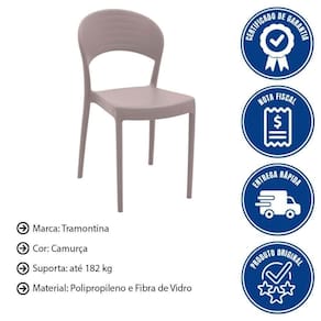 - Transforme seu ambiente com a Cadeira Tramontina Sissi em Polipropileno e Fibra de Vidro Fechada Camurça.