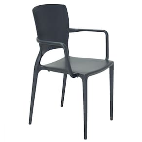 Cadeira Tramontina Sofia com Encosto Fechado em Polipropileno e Fibra de vidro Grafite com Braços