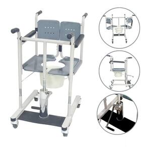 Vantagens: - cadeira com elevação manual através de alavanca de bombeamento hidráulico na parte inferior; - transporta o paciente entre diferentes lugares como cama, sala de estar, banheiro com facilidade e segurança; - melhora a qualidade de vida de pessoas com limitações de mobilidade; - comadre integrada que proporciona dignidade e conforto aos usuários - suporta até 135kg -garante estabilidade e segurança durante o uso.