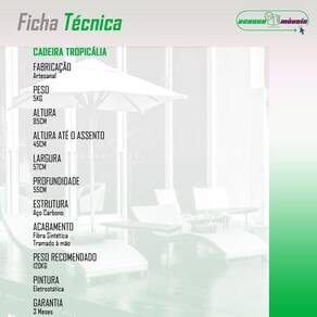Itens Inclusos: 01 Cadeira Tropicalia Aco e Fibra Sintetica para Area Gourmet