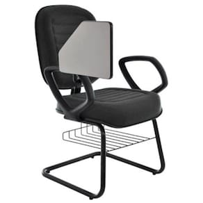 Cadeira Universitária Diretor com prancheta escamoteável e porta livros para Auditório, Escolas e Faculdades, Preto Linha Blenda – Cor: Preto Tonalidade da Cor: Preto - Marca: Design Office Móveis - Modelo: Cadeira Universitária Diretor para Escolas e Faculdades com prancheta escamoteável e porta livros