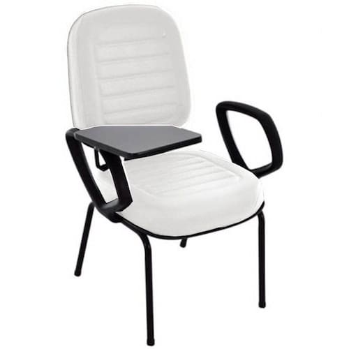 Cadeira Universitária Diretor com prancheta escamoteável para Auditório, Escolas e Faculdades, Linha Blenda Branco Linha Blenda Cor: Branco Tonalidade da Cor: Branco - Marca: Design Office Móveis - Modelo: Cadeira Universitária Diretor para Escolas e Faculdades com prancheta escamoteável
